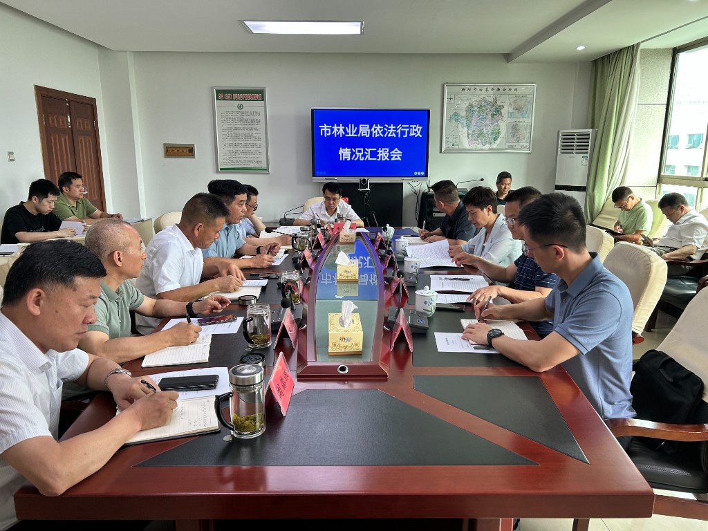 市林业局相关负责人汇报了林业依法行政工作情况,近年来,市林业局以习近平法治思想为指引,坚持“法制护林”发展思路,在强化党的领导、完善制度体系、规范执法行为、优化营商环境、严打违法行为、健全监督机制及服务民生等方面取得阶段性成效。下阶段将实施法治统筹强化、执法质量提升、队伍能力突破、监督效能提升四大工程,全面提升依法行政水平。