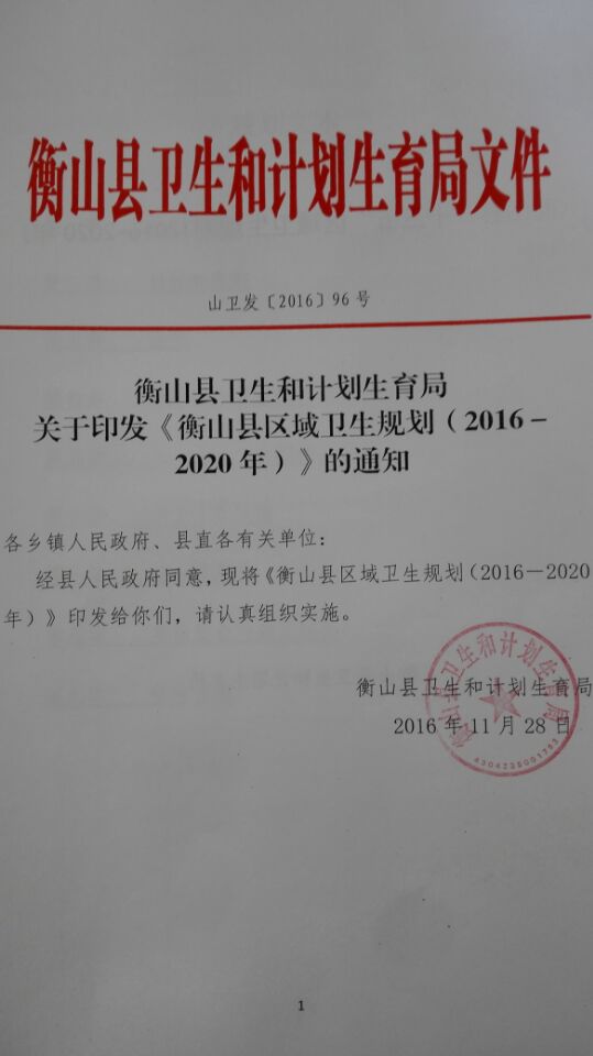衡山县卫生和计划生育局关于印发《衡山县区域卫生规划(2016-2020年)》的通知