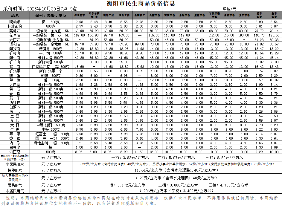 【物价】 2025-10-30衡阳市民生价格信息