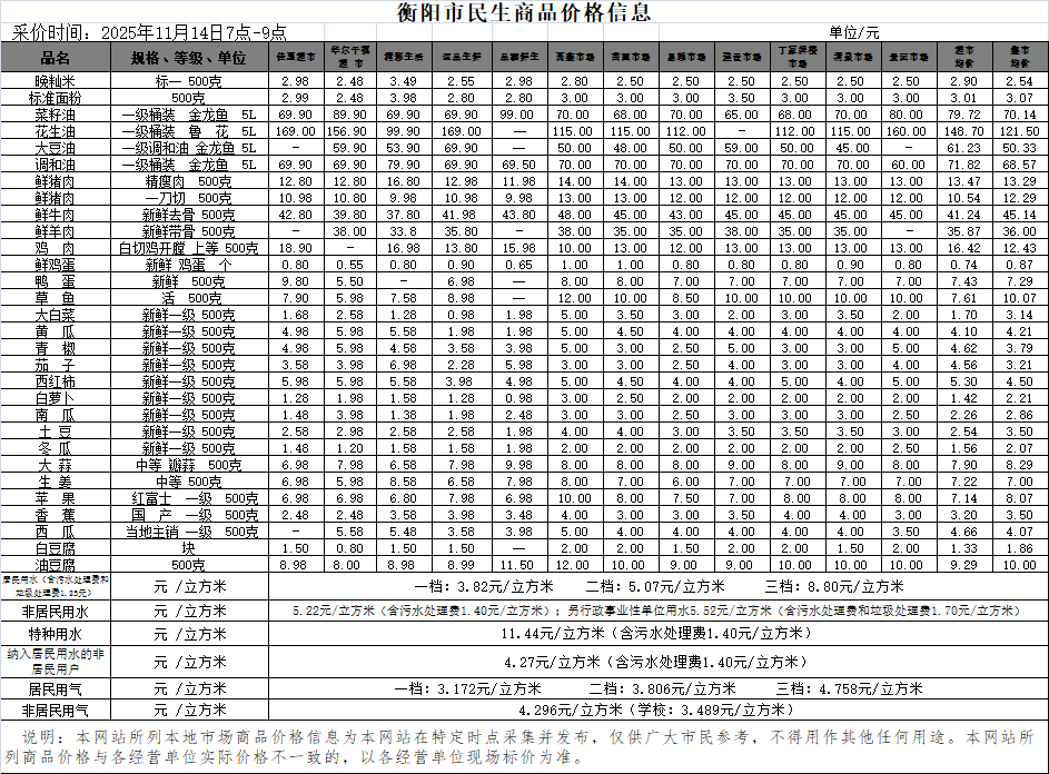 【物价】 2025-11-14衡阳市民生价格信息